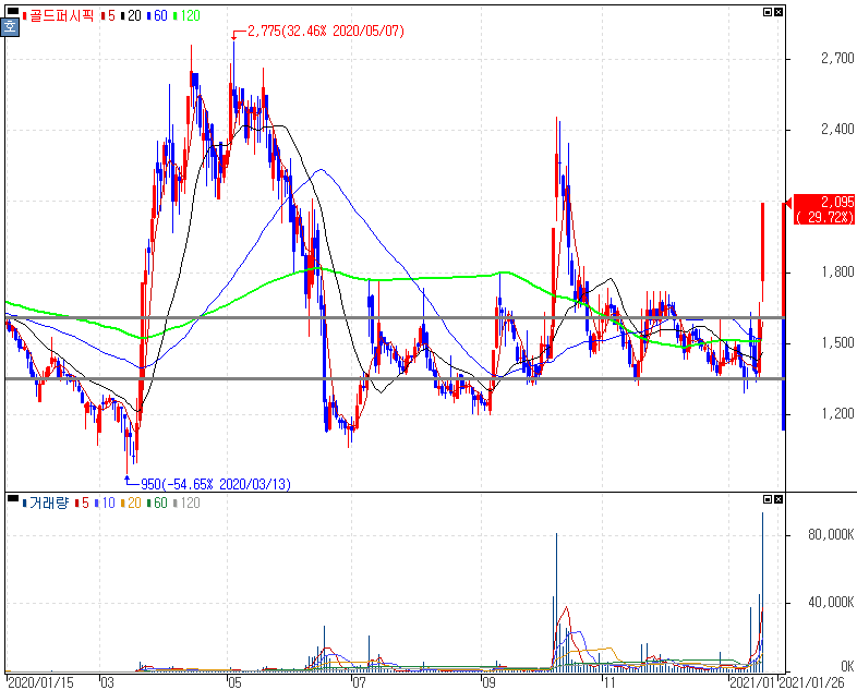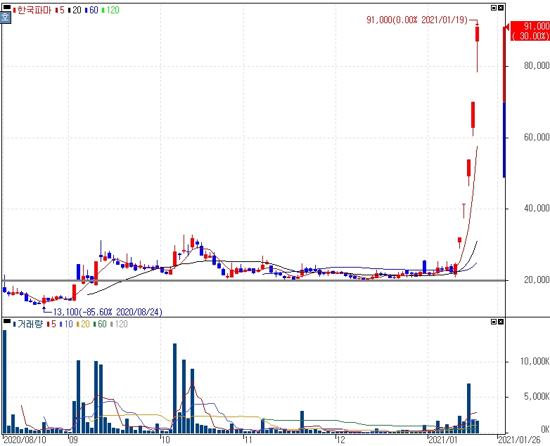 여기서 골드퍼시픽은 거론만 되어왔고 크게 상승을 보여주지 않았지만 최근 한국파마가 5거래일 상한가를 기록하는 동안 상승을 위한 거래량이나 구간 확보까지 되어주면서 적절한 상승요인들을 갖추었다는 것을 확인해볼 수 있으니 공부하시는 분들은 복기해보시길 바랍니다.