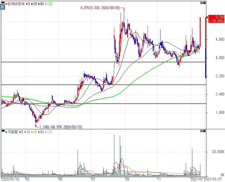 이로 인해 컴퍼니케이가 한국비엔씨 투자사로 부각이 되어 장중 상한가를 보이는 모습을 보였습니다. 개인적으로는 컴퍼니케이가 한국비엔씨를 투자했다는 정보가 없이, 기술적인 접근했다는 점을 참고해 차후 흐름들을 재료와 함께 견주어 볼 수 있게 됩니다.