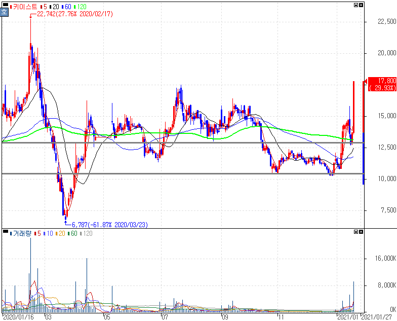 키이스트는 2021년 1차 라인업으로 텐트폴 드라마 '별들에게 물어봐', 여성 액션 추격 스릴러 '경이로운 구경이', 16부작 로맨스 드라마 '한 사람만', 보건교사 안은영의 정세랑 작가의 새로운 OTT '일루미네이션'을 공개하면서 글로벌 OTT 사업적인 기대감을 크게 받으면서 금일 영상콘텐츠, 영화관련주 등과 동반 강세를 보였습니다.