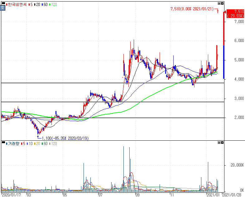 코로나19 치료 후보 '안트로퀴노놀' 임상2상 진행 모멘텀 지속에 2거래일 연속 상한가를 기록한 한국비엔씨 주가 입니다. 안트로퀴노놀은 대만에서만 자생하는 버섯에서 추출한 단일성분이라고 하는데요. 일단, 차후 美 FDA 임상 결과까지 나와봐야 알겠지만, FDA 긴급사용승인을 신청할 계획과 4월 말까지 투여를 완료할 계획을 가진다는 점도 참고해 볼 수 있습니다.
