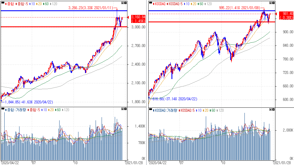 금일 코스피 지수는 +1.49% 상승한 3,160.84에 마감하였고, 코스닥 지수는 +0.38% 상승한 981.40에 마감하였습니다. 즐길 수 있을 때 최대한 즐기는 것이 좋습니다. 다만, 본인의 투자원칙만은 지켜가면서 즐겨야하죠.