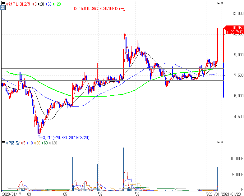 차트적인 접근면에서는 눌림목에서 저항을 강하게 돌파하면서 급등을 보였기 때문에 많이 노리신 분들도 계실거라 생각합니다. 화이자 백신이 먼저 들어올 것이라는 전망이 있었는데 화이자 관련주 경우 최근 거래량이 적었는데 오늘 좀 들어오는 모습으로 지켜봐야 하고, 콜드체인 관련주 종목들은 소폭 상승을 보이면서 마감하였습니다.