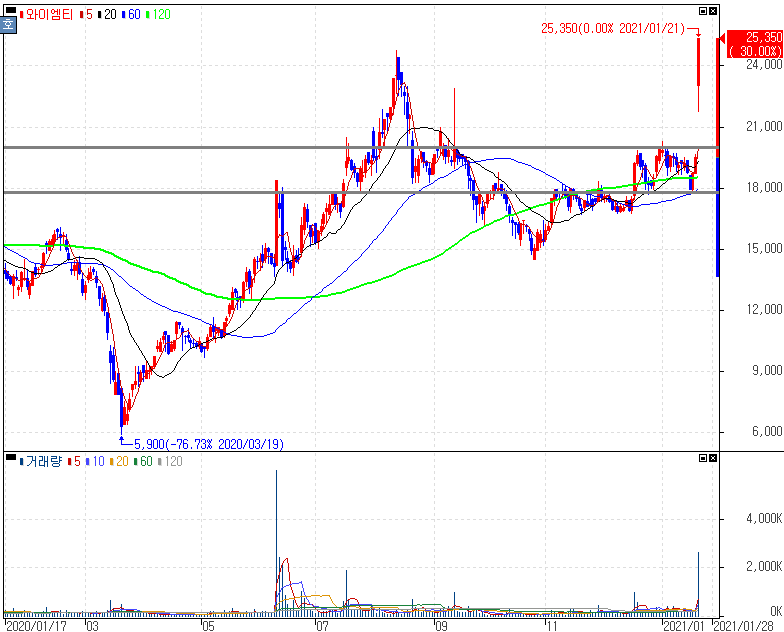 반도체·승용차 1월 1~20일 수출 호조 및 화이자 코로나19 백신 용기에 메모리반도체 공급 소식에 상한가를 기록한 제주반도체 주가 입니다. 제주반도체는 256(Mb) 메모리 용량 D램을 화이자 코로나19 백신 보관용기에 들어가는 콘트롤센서에 적용한다는 소식입니다.