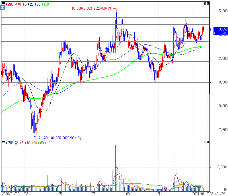 와이엔텍 주가