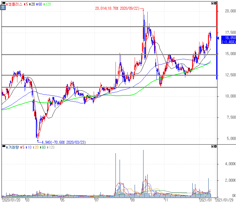 외국인 / 개인 / 기관 순매수 / 순매도 종목 1월 18일 ~ 22일 :: 엠플러스 주가