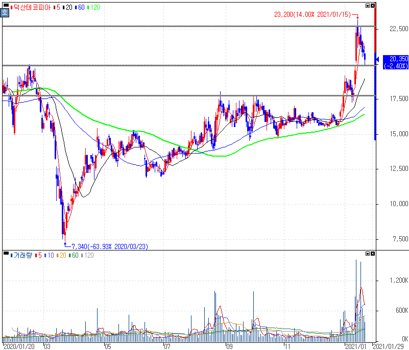 외국인 / 개인 / 기관 순매수 / 순매도 종목 1월 18일 ~ 22일 :: 덕산테코피아 주가