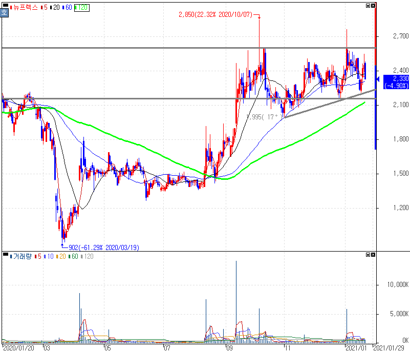 뉴프렉스 주가
