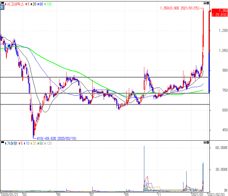삼성-테슬라 차량용 반도체 개발 협업 소식 등에 반도체, 자율주행차 관련주 상승 속 상한가를 기록한 시그네틱스 주가 입니다. 삼성전자가 테슬라와 협업해 완전 자율주행차의 핵심이 될 5nm급 차량용 반도체를 개발하는 것이라는 소식이 전해졌습니다. 삼성전자는 그동안 테슬라에 EUV가 아닌 불화아르곤 노광 공정을 거친 14nm급 칩을 공급해왔고, 이번에 5nm 반도체를 활용한 인포테인먼트(IVI) 제품군 협약할 것이라는 소식이 나오면서 충분히 반도체 및 자율주행차 관련 종목들의 상승을 자극 할만 했죠.