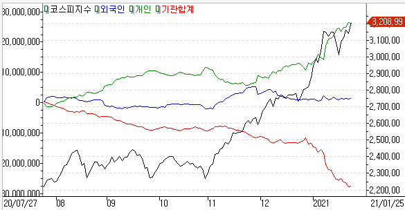 코스피 개인 -5,668억 / 외국인 +2,367억 / 기관 +3,601억