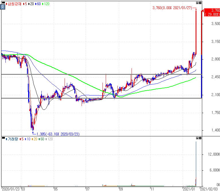삼원강재 주가 :: 2021년 01월 27일 상한가 종목
