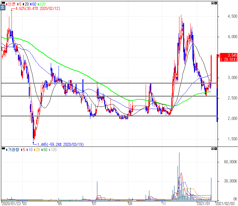 인콘 주가 :: 2021년 01월 27일 상한가 종목