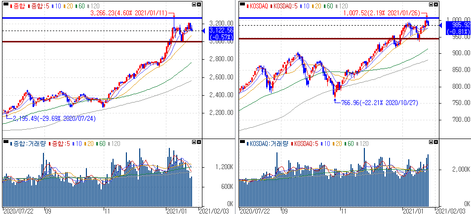 2021년 01월 27일 :: 오늘의 코스피 코스닥 지수