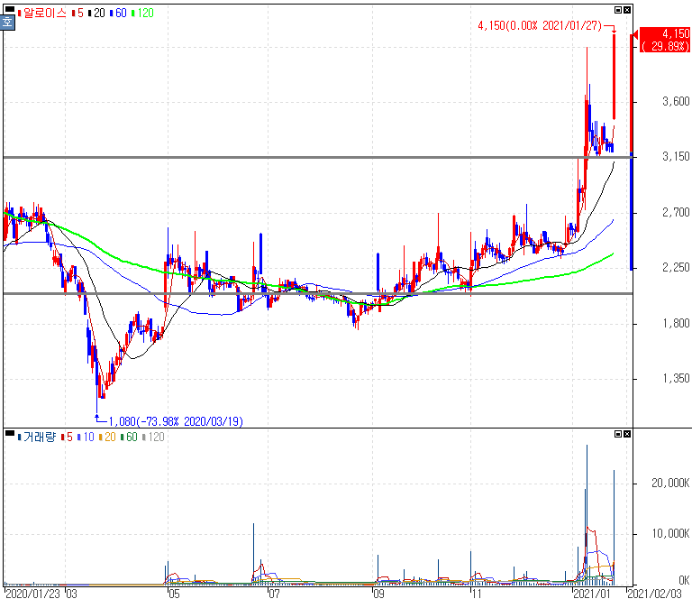디즈니+(플러스) 국내 진출 가시화 전망 등에 수혜주로 부각되면서 상한가를 기록한 알로이스 주가 입니다. '알로이스'는 입(?)이 아프도록 말씀드렸던 종목입니다. 월트디즈니 온라인동영상서비스 OTT 디즈니플러스가 국내 시장의 진출을 앞두고 있으면서 KT, LG유플러스 등과 콘텐츠 제휴 계약을 체결한 소식들이 나오고 있습니다.