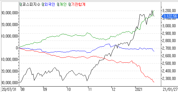 이게 얼마나 파장을 일으킬지는 지켜봐야 할 부분이지만 다른 부분으로 국내시장에서는 외국인과 기관은 FOMC에 주목하고 있다는 의미이기도 합니다. 개인의 순매수세만 지속적으로 보여지고 있습니다.