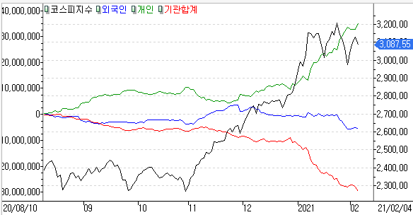 코스닥 개인 +2,173억 / 외국인 -1,188억 / 기관 -872억