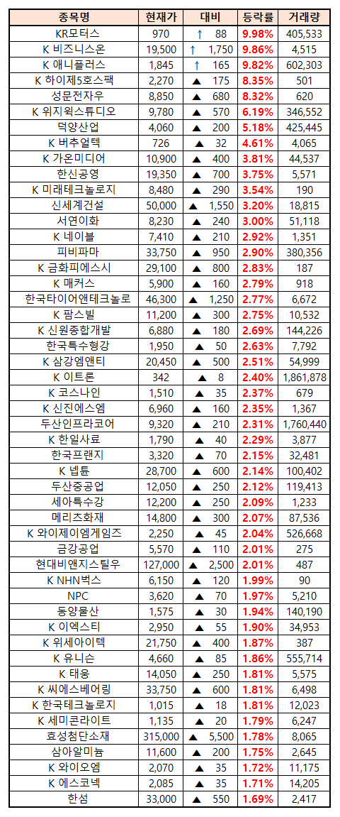 단순 시간외 종목의 상승률과 하락률만 볼 것이 아니라, '거래량'에 따르는 거래대금도 판단하면서 보는 것이 중요합니다.