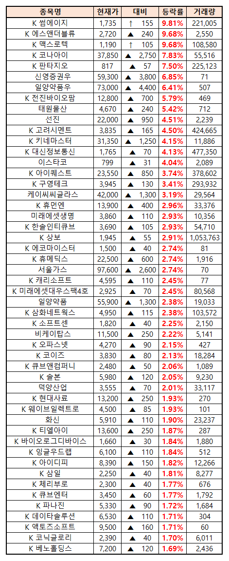 시간외 단일가매매 종목 확인시 단순 등락률만 볼 것이 아니라, '거래량'에 따르는 거래대금도 판단하면서 보는 것이 중요합니다.