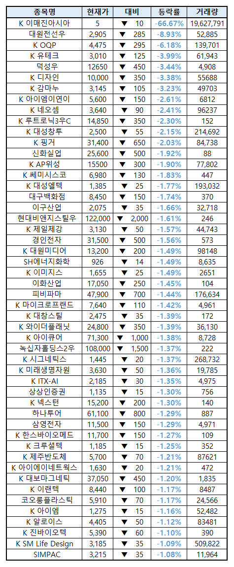 2021년 02월 10일 :: 시간외 하한가 및 하락종목