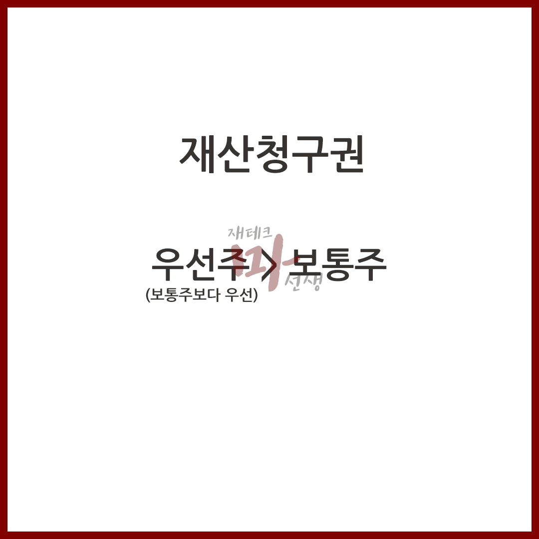 그러한 보통주를 기준으로 재산적 청구권이 우선순위로 주어지는 것이 우선주 입니다. 여기서 재산청구권은 기업으로부터 이익이나 이자의 배당, 잔여재산의 분배 등을 의미합니다.