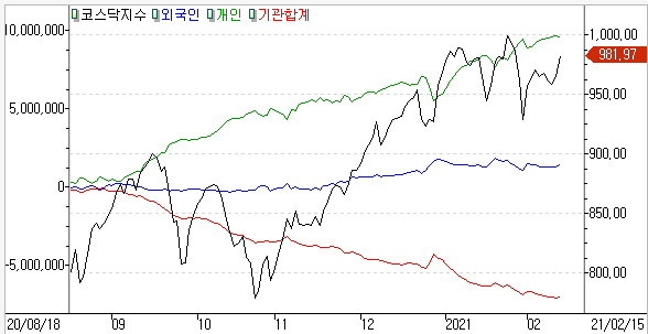 코스닥 개인 -1,521억 / 외국인 +951억 / 기관 +754억