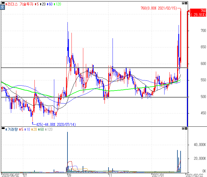 지난해 3분기(2020년 10월 01일~12월 31일까지) 실적 개선에 상한가를 기록한 리더스 기술투자 주가 입니다. 리더스 기술투자의 연결기준 전년대비 매출액 +37.02% 증가한 712.18억원, 영업익 +86.43% 증가한 149.81억원, 순이익 +20.16 증가한 102.21억원을 기록했습니다.