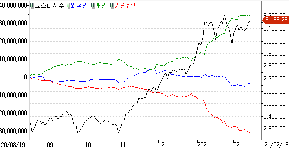 코스피 개인 +4,234억 / 외국인 +2,349억 / 기관 -6,750억