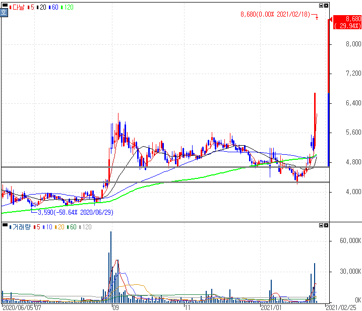 다날과 갤럭시아머니트리는 쿠팡 관련주로도 편입되어 있는데 최근 쿠팡관련주 강세 속에 매물대에서 윤곽이 드러나는 모습을 보여왔었습니다.