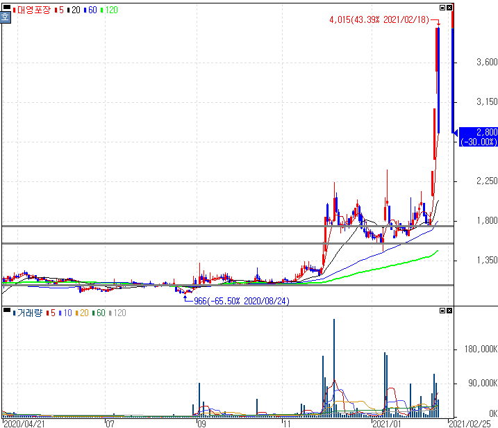쿠팡 美 상장 소식에 강세를 보인 이후 동반 하한가를 기록한 대영포장, 서울식품우, KTH 주가 입니다. 쿠팡이 미국증권거래소 상장 소식에 단기간 크게 상승을 보인 이후 하락 전환된 모습을 보이고 있습니다.