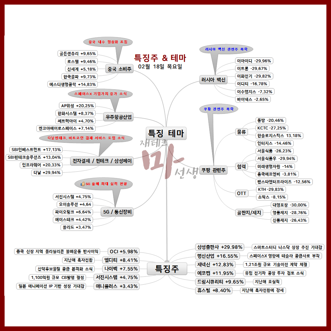 2021년 02월 18일 :: 오늘의 특징주 & 특징테마