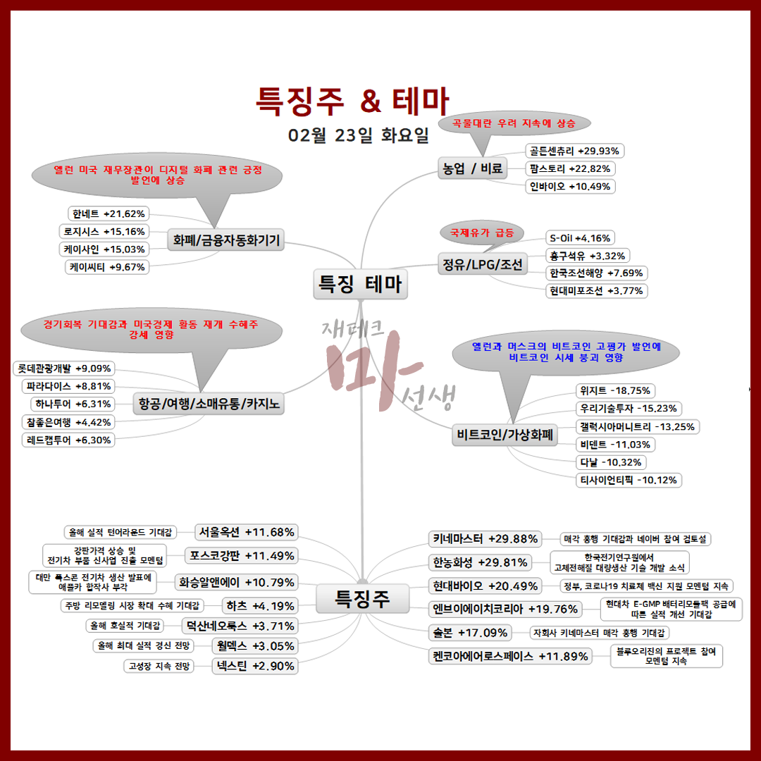 금일 특징주 및 특징테마는 게시물 하단에서 확인 할 수 있습니다.