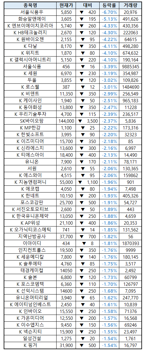 서울식품 주가 -3.39%