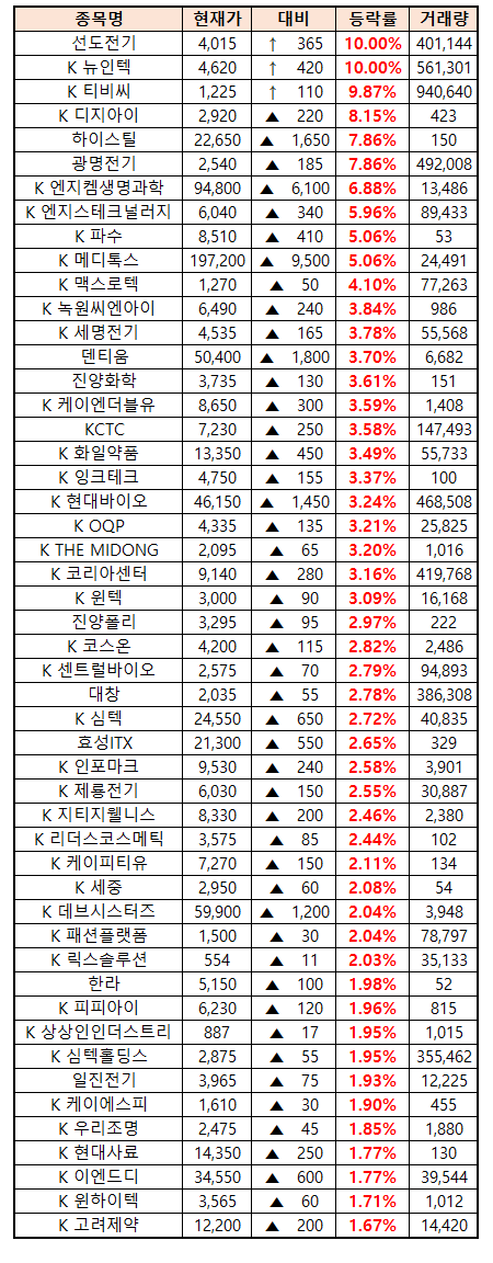시간외 단일가매매 종가 종목 확인시 단순 급등주 등락률만 볼 것이 아니라, '거래량'에 따르는 거래대금도 판단하면서 보는 것이 중요합니다.