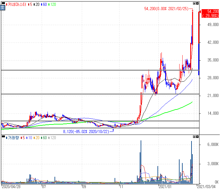 키네마스터 주가 :: 2021년 02월 25일 오늘의 상한가 종목
