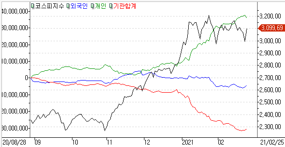 2021년 02월 25일 :: 개인 외국인 기관 투자자 동향 코스피