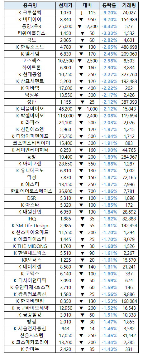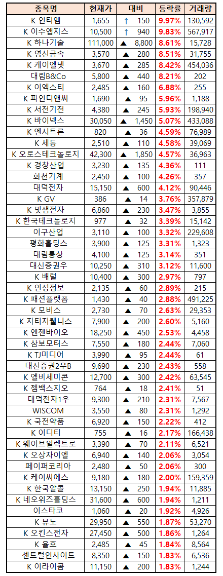 시간외 단일가매매 종가 종목 확인시 단순 급등주 등락률만 볼 것이 아니라, '거래량'에 따르는 거래대금도 판단하면서 보는 것이 중요합니다.