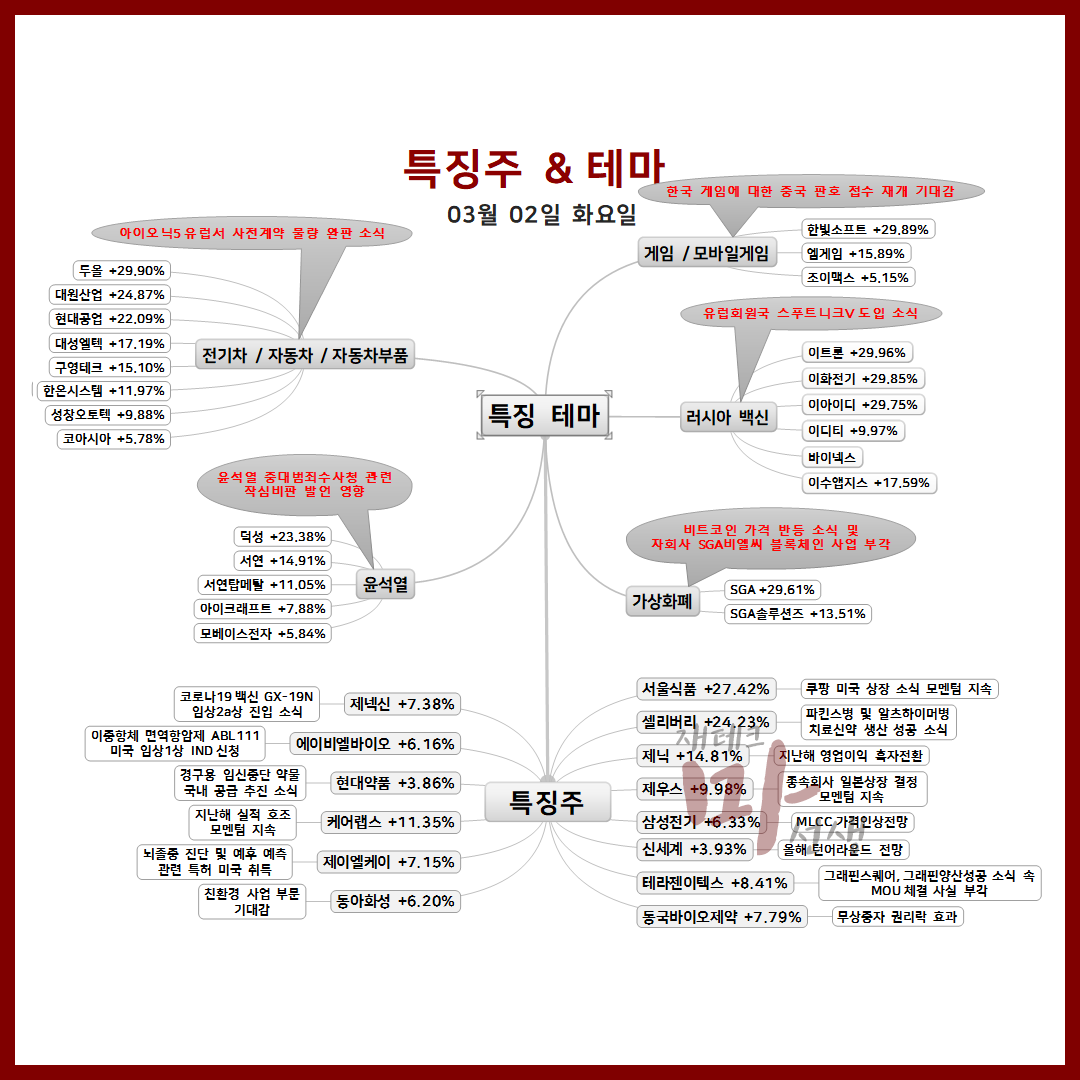 금일 주요 특징주 및 특징테마는 아래 하단에 게시되어 있습니다.