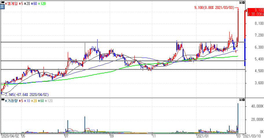 메타버스 시장 급성장 전망 등에 상한가를 기록한 엠게임, 선익시스템 주가 입니다. 시장조사업체 SA에서 메타버스 시장이 올해부터 급격히 성장해 2025년에 관련 매출이 한화로 약 310조원인 2,800억원이 될 것이라며, 현재보다 6배 이상으로 성장 할 것이라는 전망을 내놓았습니다.