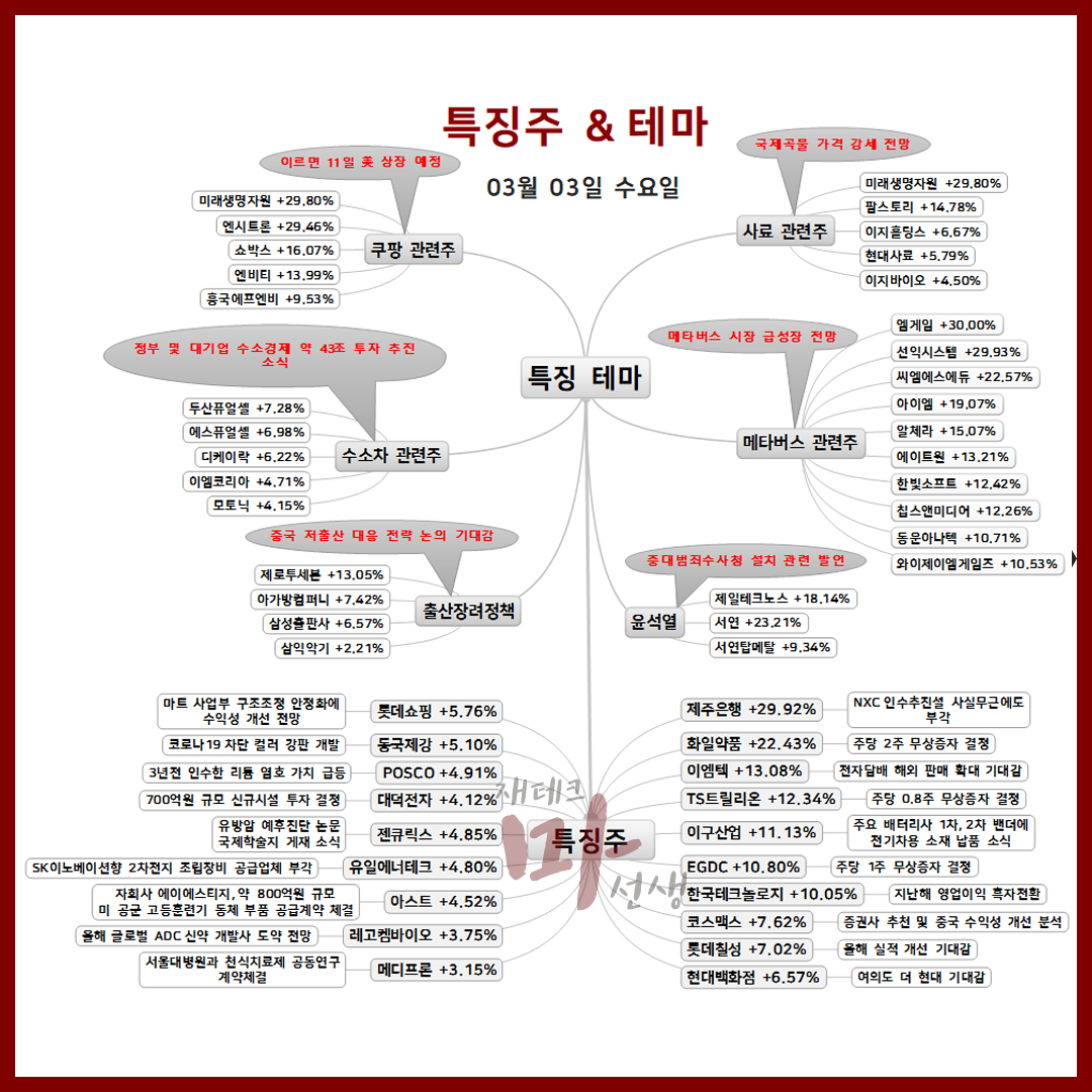 금일 특징주 및 특징테마는 게시물 하단에서 확인 할 수 있습니다.