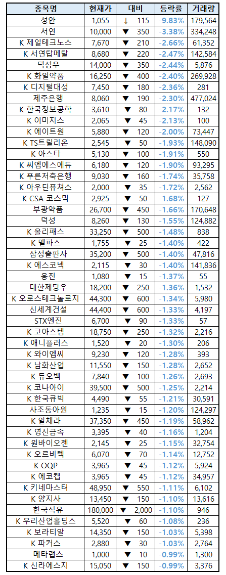 성안 주가 -9.83%