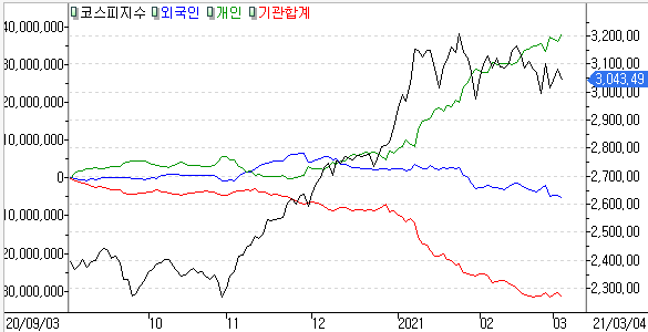 코스피 개인 +21,962억 / 외국인 -9,287억 / 기관 -12,825억