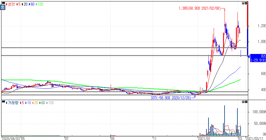 종속회사 성안합섬(주), 자금 횡령사고 발생에 하한가를 기록한 성안 주가 입니다. 일부 이재명 테마주 종목들이 급락을 보인 종목들이 일부 있습니다. 그러나, 하한가를 기록한 성안은 종속회사 성안합섬(주)이 200여억원 수준으로 추정되는 자금 횡령사고에 치명적인 급락을 보였습니다.