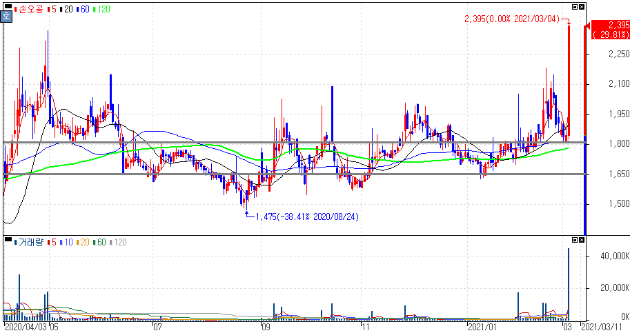 디즈니 플러스 한국 진출 초읽기 소식 속 제임스 前 월트디즈니 부사장 사내이사 선임 사실 부각에 상한가를 기록한 손오공 주가 입니다. 디즈니+가 국내 OTT 시장에 들어온다는 이야기는 몇달 전부터 있었던 이야기이죠. 국내 시장에 정착하기 위해서는 국내 관련 업체들과 연관성이나 관련 부서의 조직 개편이 필요로 하기 때문에 디즈니플러스와 연관해 연관 종목들을 수시로 확인해 볼 필요성도 있습니다.