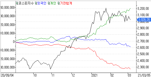 코스피 개인 +11,889억 / 외국인 -3,687억 / 기관 -8,051억