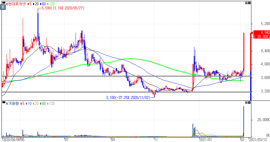 전기차 충전소 관련 사업목적 추가 기대감 재부각 등에 상한가를 기록한 현대퓨쳐넷 주가 입니다. 현대퓨쳐넷은 정기 주주총회에서 전기차 충전소 관련 사업 등을 사업 목적에 추가하는 안건을 처리할 예정이라고 밝혔었습니다.