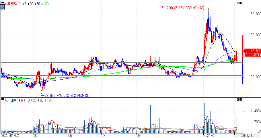 유틸렉스는 식약처에 면역항암제 EU101의 임상1상과 2상 시험계획을 신청했을 뿐만 아니라, 세포치료제 위티앤티셀 뇌종양 임상시험에서 완전관해 반응까지 확인한 상황으로 재료노출의 연속성이 보여주고 있습니다.
