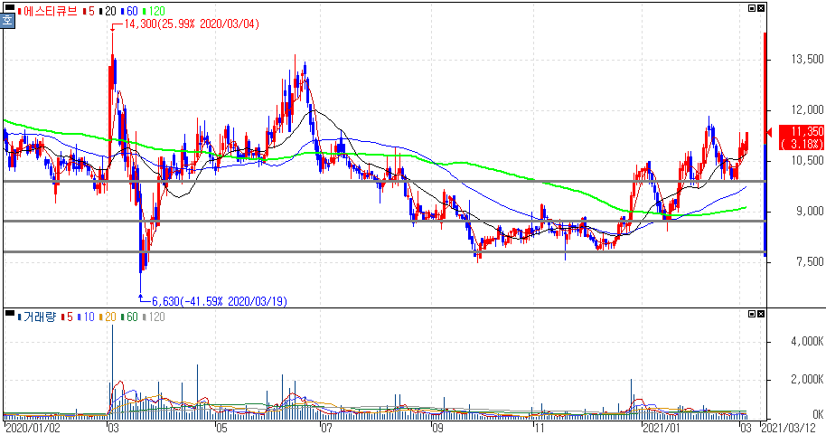 에스티큐브는 핵심 파이프라인인 STT-003 타겟의 항체 hSTC810에 대한 연구결과를 발표할 예정으로 지난해 하반기 약세로 전환됐던 에스티큐브는 올해 들어 상승분위기를 타는 모습입니다만 지난해 흐름 구간을 올해 돌파를 할 수 있을지가 관건입니다.