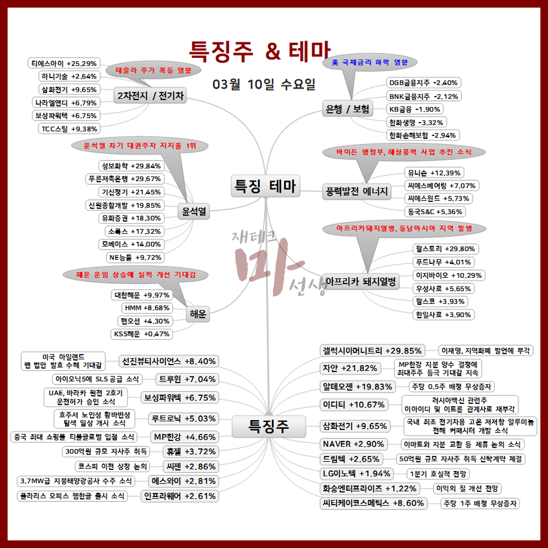 금일 특징주 및 특징 테마는 게시물 하단에서 확인 할 수 있습니다.