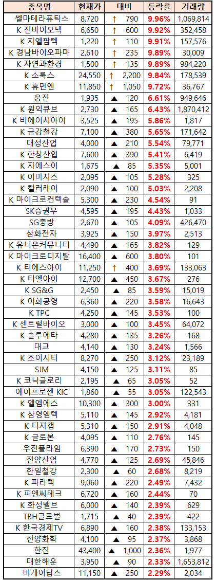 시간외 단일가매매 종가 종목 확인시 단순 급등주 등락률만 볼 것이 아니라, '거래량'에 따르는 거래대금도 판단하면서 보는 것이 중요합니다.