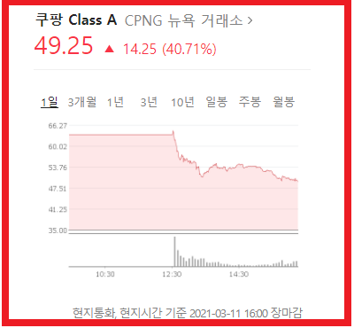 미국 월스트리트저널 WSJ에서는 마켓컬리가 한화로 약 1조원인 약 8억8천만 달러 가치를 가진 업체로 보는 가운데 쿠팡이 이번 美 상장으로 시가총액 100조원과 차이는 있습니다만