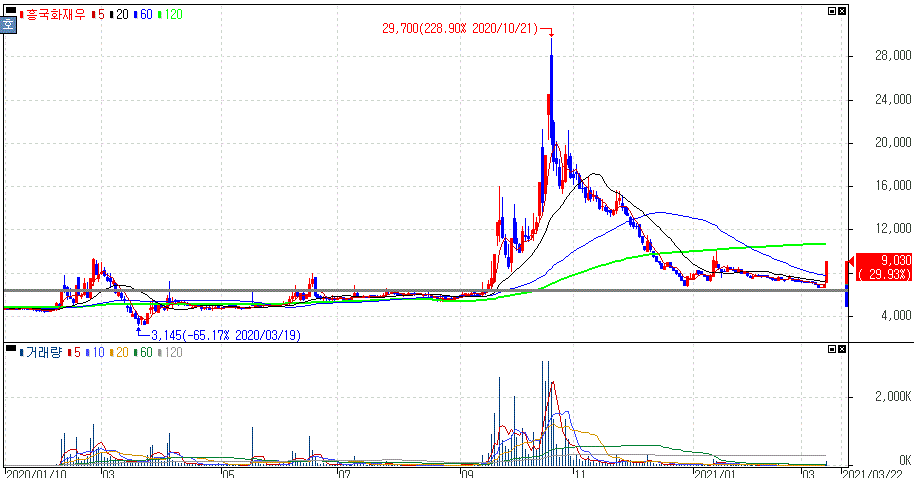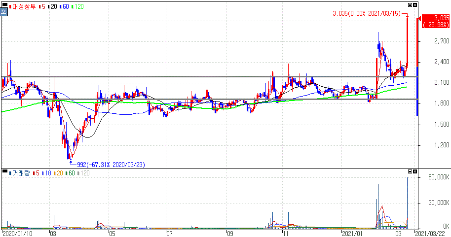2021년 03월 15일 오늘의 상한가 종목 및 이유 :: 흥국화재우 신원우 아주IB투자 대성창투 동국알앤에스 주가 외